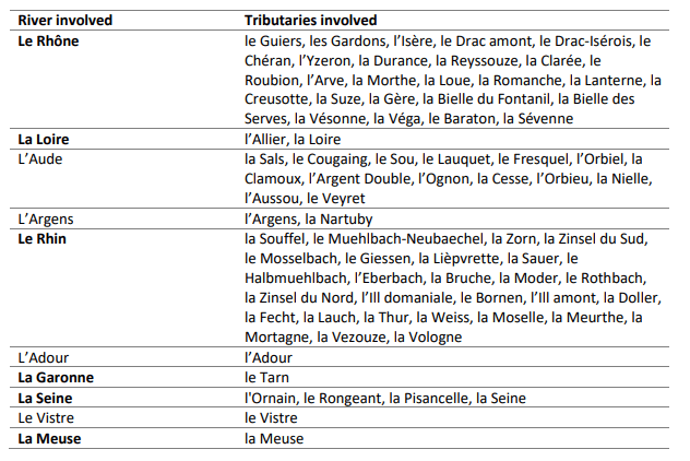 Tabelle 1: Tabelle 1: Gewässer in Frankreich, an denen bereits Projekte nach dem „Espace de Liberté“-Konzept umgesetzt wurden